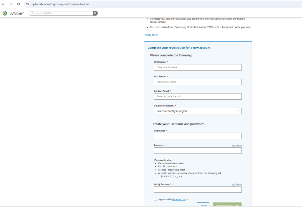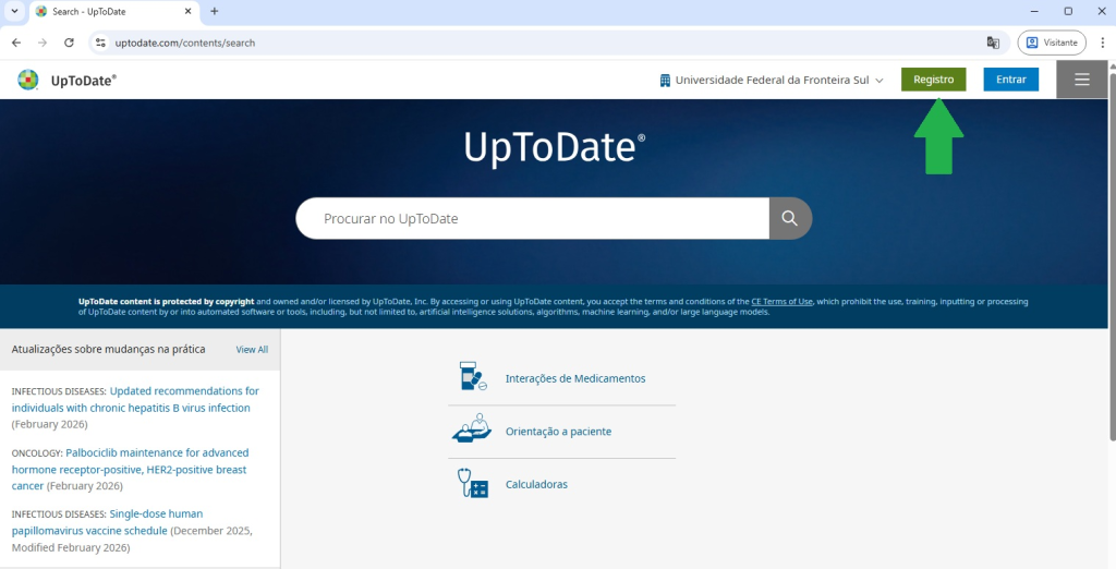 - Acesse o site www.uptodate.com.